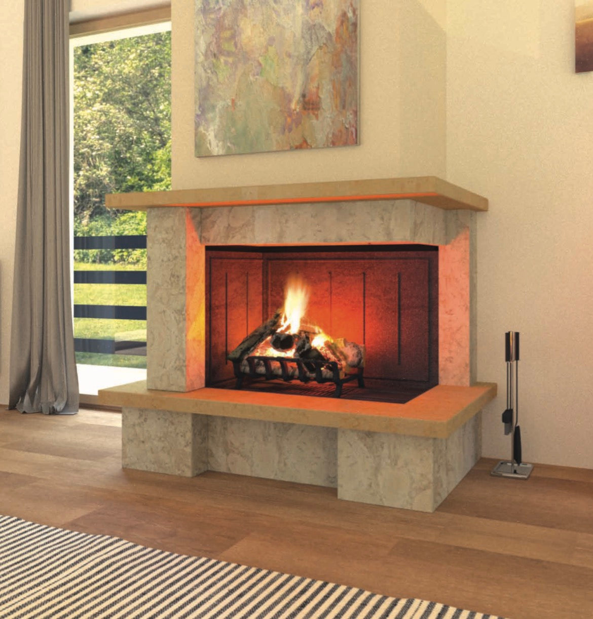 Camino a parete Modello LONDRA completo di prefabbricato in refrattario