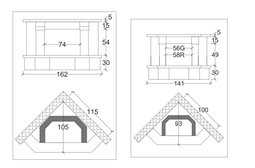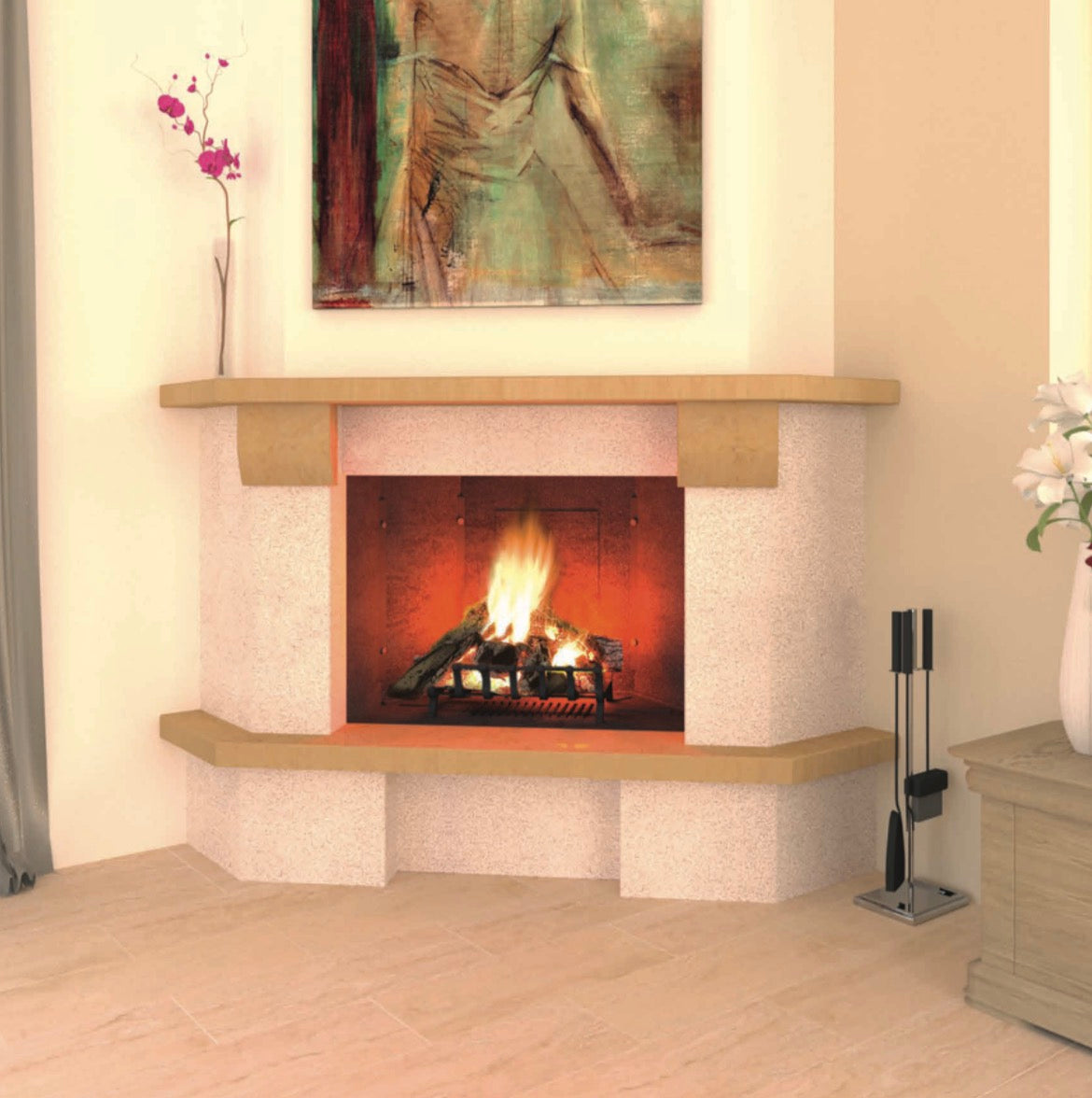 Camino ad angolo Modello BARCELLONA completo di prefabbricato in Ghisa