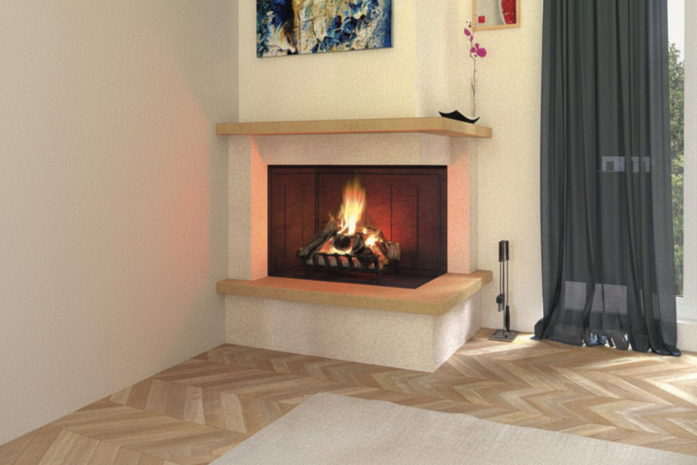 Camino ad angolo Modello NAPOLI completo di prefabbricato in refrattario