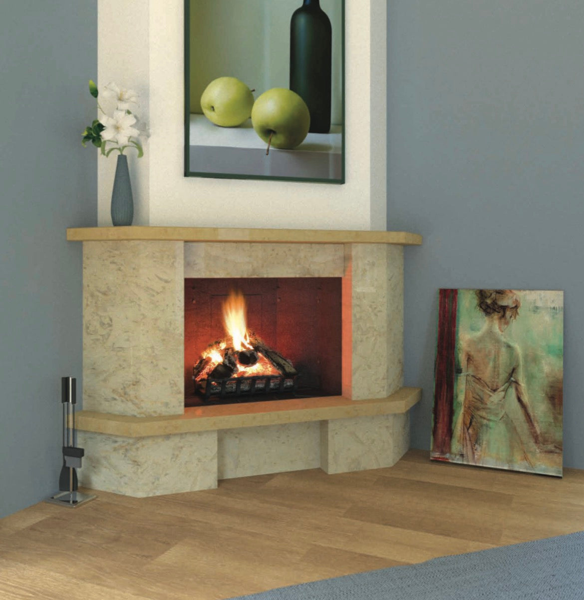 Camino ad angolo Modello PARIGI completo di prefabbricato in refrattario