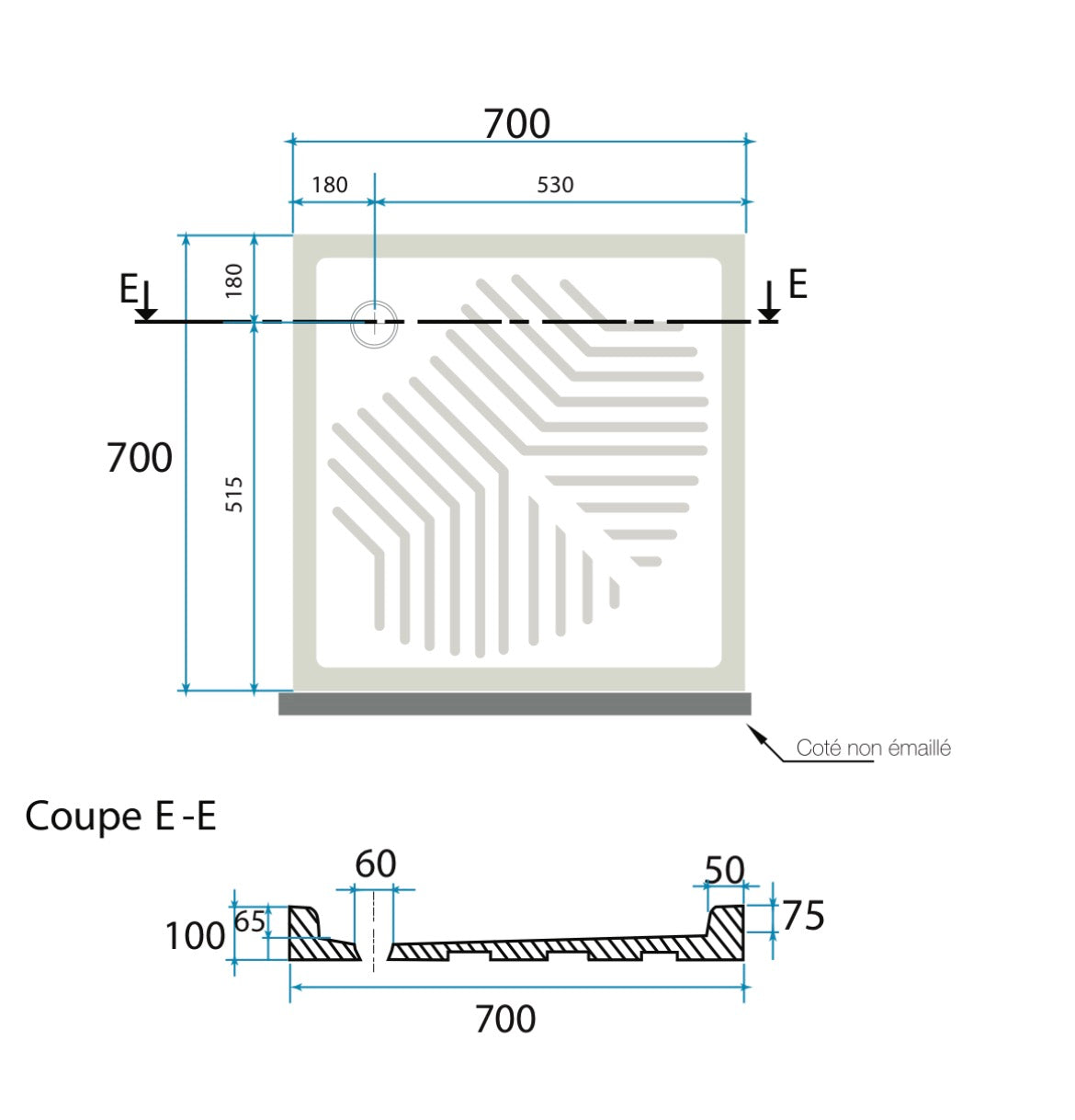 PIATTO DOCCIA in ceramica lucida 70x70xH10 cm
