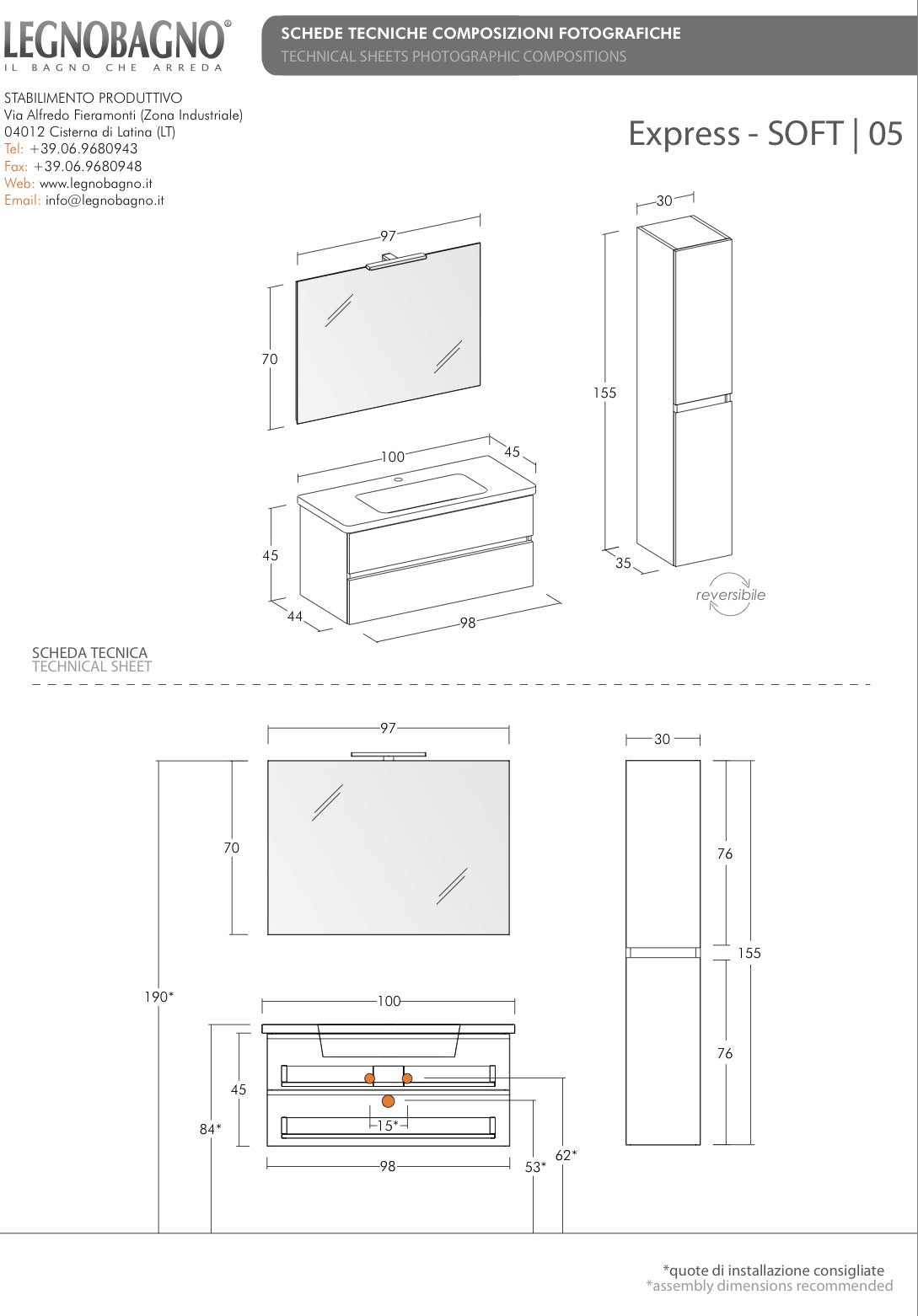 Legnobagno Comp.Soft 05 Rovere riviera completa di specchio, lampada Led, Base, lavabo (colonna esclusa)